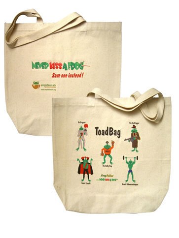 1) They replace those oh-so-nasty plastic supermarket bags that damage the environment. 2) Each purchase provides a contribution to Amphibian Ark – an international organization dedicated to saving 3000 species of frogs in danger of extinction! 3) One side of the bag features 5 funny green frogs: Count Frogula, Sir Frogalot, The Bully Frog, The Godfrogger and Arnold Shwarzenhopper! The other side carries the message: NEVER KISS A FROG – Save One Instead! So contrary to what Kermit said – now its easy being GREEN! Just click on the ToadBag at www.neverkissafrog.com. Only $19.99 and you’re a Triple Green Gal! Oh yeah, and if you’re heading to the beach, you might want to stash some fun It’ll help you get rid of human frogs while you’re saving the real ones! Remember, if you think a frog will turn into a prince – FROGGEDABOUDIT! |