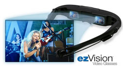 The ezVision Video Glasses offers you a 50″ virtual screen that fits like a pair of glasses. The ezVision Video Glasses is ultra lightweight, weighing a mere 4.0 ounces. With built-in earphones, an 8-hour rechargeable Lithium ion battery pack, iPod & DVD adapters, and the included wall charger, you get everything you need to enjoy movies, music videos, cartoons, and podcasts. Top gift pick for media lovers.www.ezgear.com $299.99 or for a more affordable price tag take a look at www.thinkgeek.com.