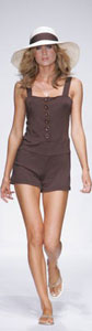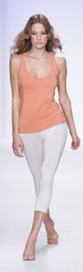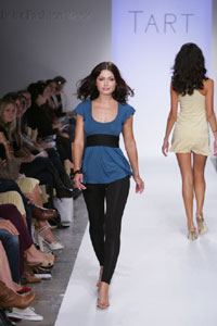 This season, Tart is aimed at creating a “chic and confident” look, according to its design leader. With an undeniable statement of ultra cool, 70s-inspired sexiness, Wood’s collection featured deeply shaded solids, ranging in the likes of navy, purple, orange, chocolate, and with, of course, a springtime accent of white. Jumpers, leggings, below-the-bosom belts, and mini-dresses (a “Lolita feel”) are soooo Southern California on-the-go appropriate.