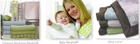 Many parents of newborns just love SwaddleDesigns, Ultimate Receiving Blankets, Baby Burpies, or Lovie. The list includes Angela Jolie and Brad Pitt, Marcia Cross, Gwenyth Paltrow, Geena Davis, Kim Fields, and Debra Messing.