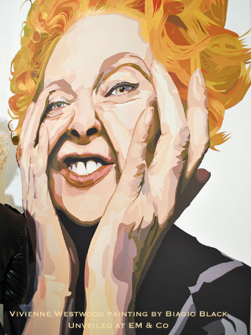 One of the highlights of the evening was the arrival of celebrity painter Biago Black’s painting of Vivienne Westwood. It is the latest piece in his collection currently at EM & Co, featuring iconic women. The large format captures the larger-than-life influence that these women have in defining style and creativity.