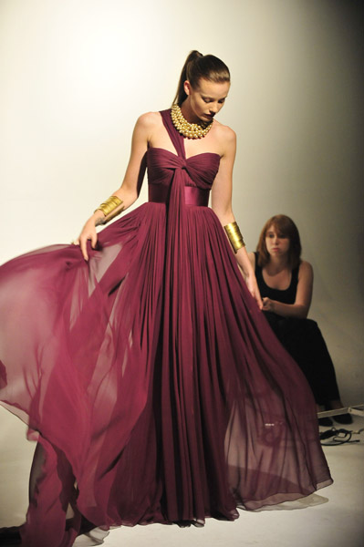 The vicious PR wars . . . the left hand didn’t know what the right hand was doing.   RSVPs and last minute venue changes posed big problems.  The more established LA designers put on their own shows, separate from Fashion Week (Kevan Hall, Maggie Barry, etc…).  Some designers showed in big venues (Project Runway designers at the Music Box, Lauren Elaine at the Key Club), which turned into giant cocktail parties/concerts.