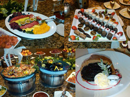 How do you like your eggs? Scrambled, poached, omelet, Frittata? It doesn’t matter; the duty chef will prepare them for you. Do you want Belgian Waffles, BBQ ham, thick smoked bacon, biscuits and gravy, sausage, or chicken-fried pork chops? No problem, it’s all there for you. How about a huge just-out-of-the-oven roast beef, dripping in a luscious au jus? Carvers are waiting to serve you. Do you desire fresh fruits and salads brimming over with perfectly ripened blackberries, blueberries, strawberries, mango, and more? Yes, and all may be adorned with fresh cream, real whipped cream or brown sugar.