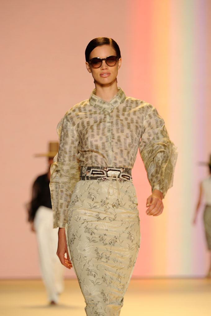 I think what we’re going to see next year is something manic about skirt lengths. It’s interesting that there’s a lot of short and there’s a lot of long. But I think what’s feeling new to women is long. I think the asymmetry is still going to be happening, but we’re going to be seeing body-conscious dressing . . . one, very tight sleeves. We’re seeing these handkerchief silhouettes where one arm is bare, sleeveless, and the other half is like a drapey handkerchief feel. There’s a lot of white for spring and the colors are very tropical: full blues, bright yellows, vivid corals, and sheer madness. It’s interesting for spring/summer months. When it gets warmer, people want to pare down and wear fewer layers, but when you’re using sheer clothing, you have to layer up. I think of it as a way to make your wardrobe fresh. People don’t buy all new clothes every season. They don’t empty their closets and buy all new clothes. What they do is add new pieces. I think it’s a very easy way for women to add a great piece to their wardrobe—something sheer and wear something from last season with something that’s sheer and new. So she can wear a sheer blouse over a wife beater and a pair of jeans, or with a pencil skirt and a great camisole; but it’s a great way to bring something fresh into your wardrobe and feel like you’re on point and stylish!