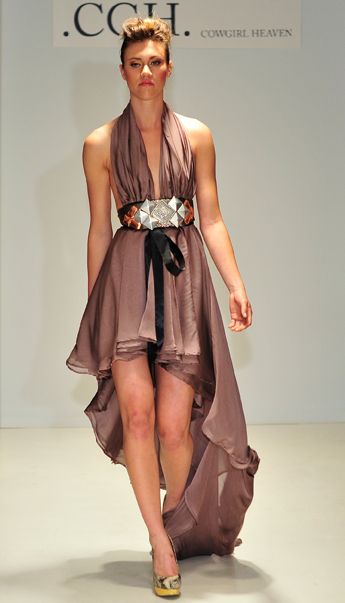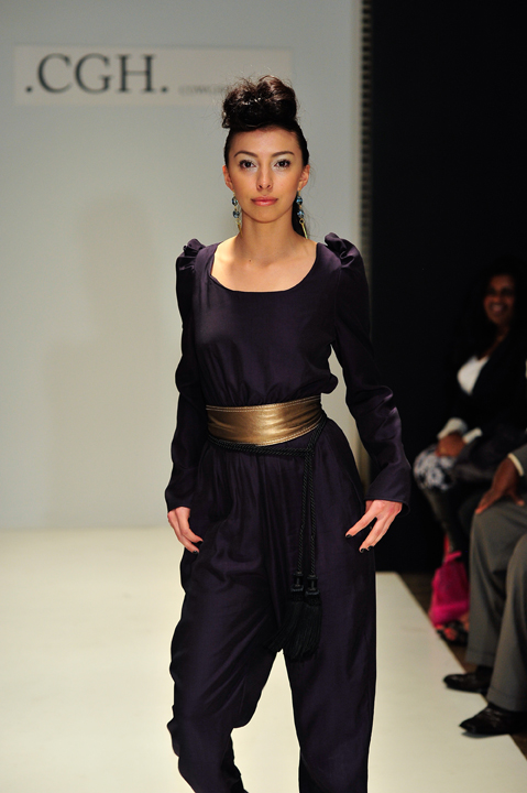 Model Walks the runway at the CGH Couture Fashion Show at Agenda Loft during LA Fashion Week on March 19, 2011 (Photo by Arun Nevader, WireImage)A model walks the runway at the Holly Waas Fashion Show during fashion Week at Agenda Loft on March 17, 2011 in Los Angeles, California. (Photo by Arun Nevader, WireImage)Houstina Summer’s line was very formal and dramatic with interesting fabrics.  I was pleasantly surprised by how figure-flattering her clothes were in this collection.  The big highlights here were the mauve halter cocktail dress with the long train and the silver synthetic gown that was the final piece in her show.  Let’s face it; there were a lot of great pieces.  Summers showcased the popular trends for fall 2011.  For instance, the gold one-sleeve lamé top with ruffled skirt; it was spectacular!  Oh, and those shoes . . . let’s not forget those shoes.  I was totally blown away by the innovative, popping style of some of those pumps, most especially the pink ones.  Designer Holly Waas showed a collection of mostly cocktail dresses with a couple of pieces featuring club wear styled with lace leggings.   The big highlight of this line was the cocktail dress with the black floral appliqué and one-shoulder purple top . . . simply beautiful.