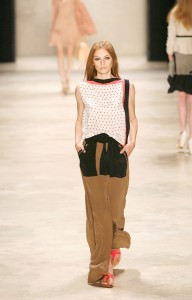 A model walks the catwalk at the Schumacher Show during Mercedes-Benz Fashion Week Berlin Spring/Summer 2012 at the Brandenburg Gate on July 7, 2011 in Berlin, Germany.