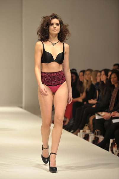 A model walks the runway at the Triumph A/W 2011 show at London Fashion Week on February 22, 2011 in London, England.