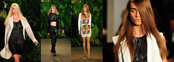 By Kaylene Peoples | October 17th, 2011 | Category: Articles, Interviews and Reviews, Fashion, Runway | 1 Comment »During New York Fashion Week on September 10, Designer Joseph Altuzarra created a classy, yet edgy, sophisticated, yet futuristic collection, which defined his Spring 2012 line. The vivid colors, ranging from vibrant greens, bold yellows, striking whites, blacks, and prints, colored a variety of styles. The standouts were the white trench and black netted leather dress; dresses paired with leather jackets; vinyl pants; quilted sets; over-sized sweaters; nice knits, and sporty and playful prints, ranging from the ever too familiar Hawaiian theme (this season) to athletic accents. Other notables were parachute straps worn over a sleeveless dress, backless vests, hooded coats, and trousers with racing stripes.