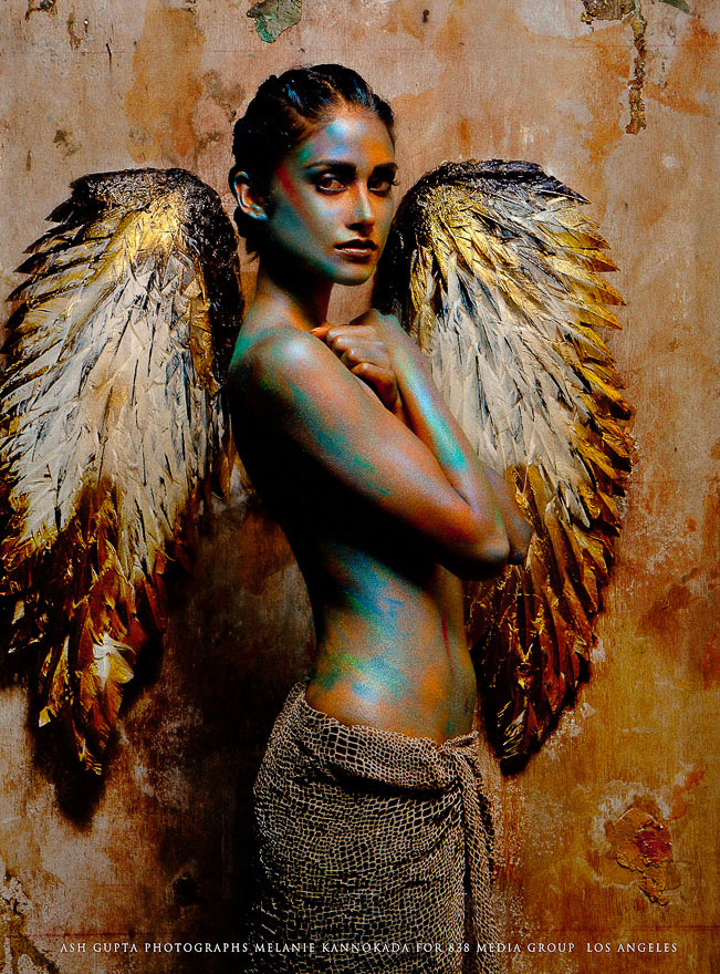 Melanie Kannokada, a rising actress from New York, came in for a portfolio shoot. She was tired of the same old images and wanted to try something new. So, we painted her up, and put on the angel wings, and started shooting. The images are beautiful, and as distinctive as you can ask for!