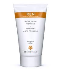 Cleanser: Ren Radiance Micro Polish Cleanser. This multi-tasking formula is both a cleanser and an exfoliant. Get two jobs done in a single step.