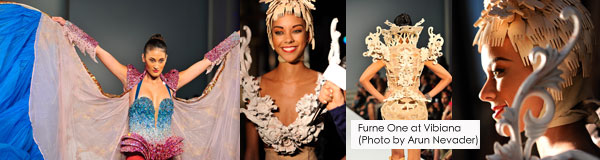 Furne One Runway (Photo by Arun Nevader)Furne One’s Spring 2012 collection made its way un-chaperoned to Los Angeles at Vibiana during Style Fashion Week LA.   That’s right.  The designer was home in Dubai while his collection received mixed reviews here.  The collection left some raving and others ranting; and some of those rants turned into raised voices literally on the media riser. Several photographers mocked the models as they came down the runway.  (I don’t condone this kind of behavior, but it happened anyway.)