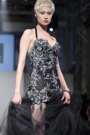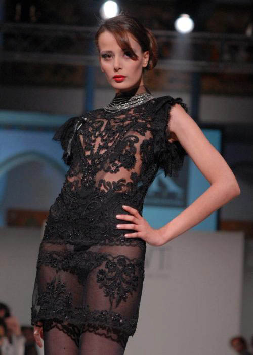 LK Paris designs have an array of exclusively “made in France” materials. Represented in the pieces in the LK Paris “Couture to Wear” Fall 2012 collection is a combination of fall laces, corsets, hand embroidery, hand painting, appliqués, feathers, and subtle artisan qualities.