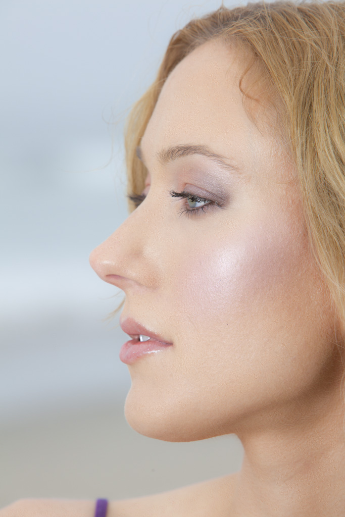 “Using a makeup primer underneath the base is key. It allows the makeup to last throughout the day without slipping off or disappearing. Keeping things light is also important; opt for a tinted moisturizer with SPF instead of foundation, to keep skin looking translucent, bright and fresh. The goal is to make the skin look bare, but better. Finish with a dusting of loose powder in the center of the face to set.”