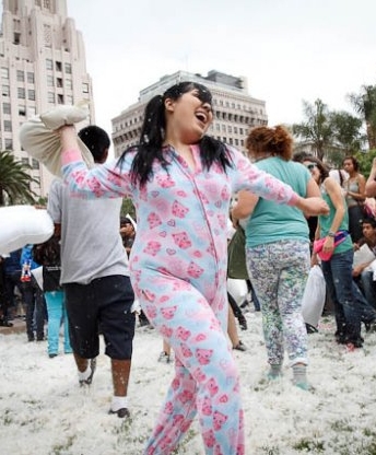 International Pillow Fight Day celebrates its 6th year in 2013. Happening on the first Saturday in April, it has now taken over the world, with pillow fights in over 30 cities around the world. How it generally happens: People converge in a set location (generally a public square or park), carrying pillows and often wearing pajamas, and at a set signal from the organizer, start pelting each other with feather pillows. The free-for-all battle continues for 2-3 hours, until pillows have no feathers…Then clean-up, and more fun . . .