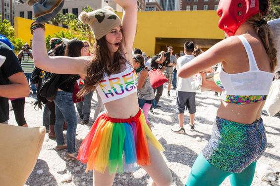 The Pillow Fight allows us to forget for a brief moment about being serious adults, to laugh and play freely. It’s inspiring to see individuals use their creativity to promote fun interactions between people, and to bring more smiles. Here are some photos of past pillow fights in L.A. Hope to see you at the next one!