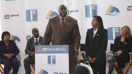 2007 World AIDS Day - Earvin Magic Johnson and Cookie Johnson at the PodiumDecember 1st marked World AIDS Day, an opportunity for people throughout the world to come forward and unite in the fight against HIV, showing support for people living with HIV as well as commemorating people who have died from AIDS.  World AIDS Day was first held in 1988 and has been regarded as the first ever global health day.