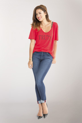 We have designed a slim fit classic jean called “Truth” with a red stitched roll at the bottom and a red “Boyfriend” tee with the word “Truth” on it.  The ultimate truth is this disease is totally preventable if we all act responsibly!